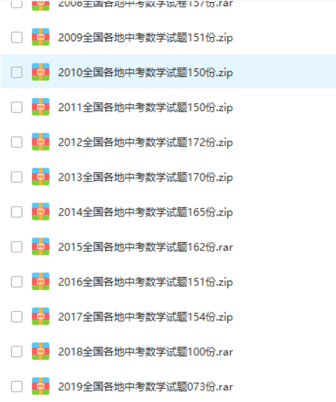 分享一套从2008年到2019年的初中数学中考真题试卷集,是孩