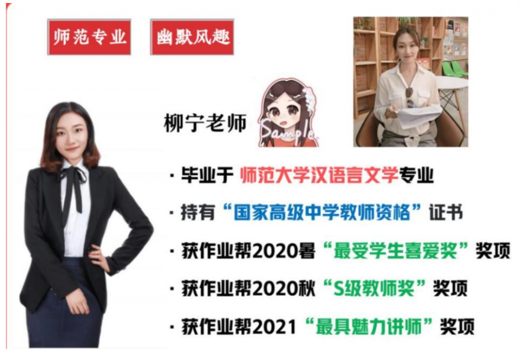 柳宁老师,毕业干师范大学汉语言文学专业持有“国家高级中学教师资格”证书